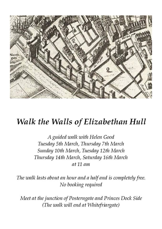 Calling all Hull history enthusiasts, try a guided walk from historian Helen Good. ‘Walk The Walls’ of Elizabethan Hull for free from 11am on March 5th, 7th, 10th, 12th, 14th and 16th.