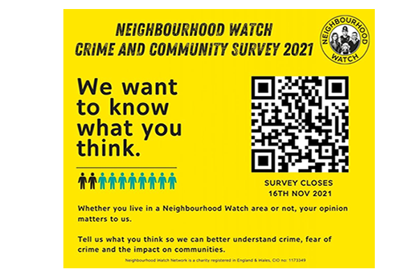5th November 2021 5th November 2021Categories Get InvolvedMembership BenefitsNeighbourhood WatchNational Neighbourhood Watch Crime & Community surveyThis survey closes on 16th Nov. Have your say on crime and community. The National Neighbourhood Watch want […]