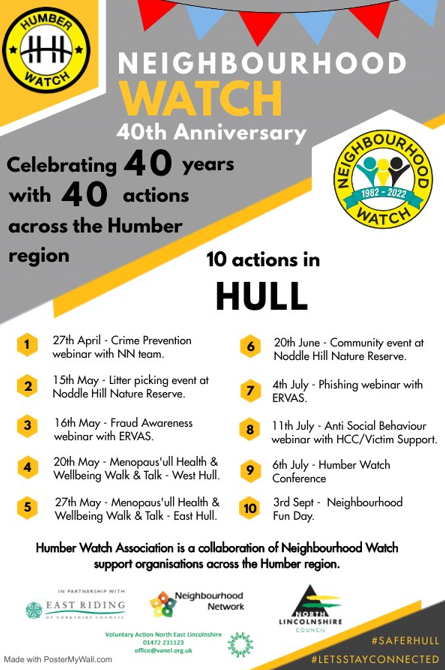 This year, as we celebrate 40 years of supporting neighbours and building communities’ resilience, we are delighted to mark Neighbourhood Watch Week, 30th May – 5th June 2022, with the theme of 40 YEARS, 40 ACTIONS.