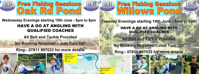 The Hull & District Anglers Association are holding FREE taster sessions at Willows Pond (East Hull) and Oak Road Pond (West Hull).