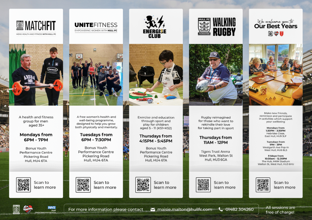 If you would like to know more or partake in any of these activities you can take a look at the Hull FC website here https://hullfcfoundation.co.uk/health-wellbeing/ or contact maisie.malton@hullfc.com