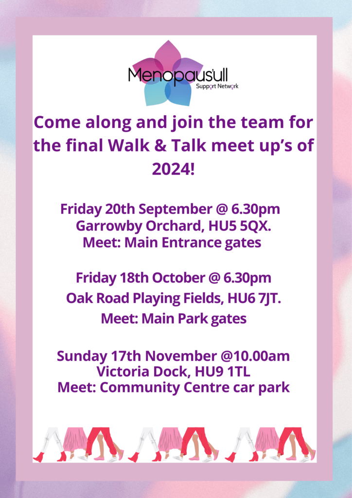 20th August 2024Join the Menopaus’ull team at their upcoming Walk & Talk sessions!