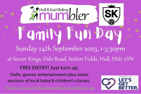 The next Mumbler family fun day is Sunday 24th September 1-3.30pm at Soccer Kings on Sutton Fields, Hull.