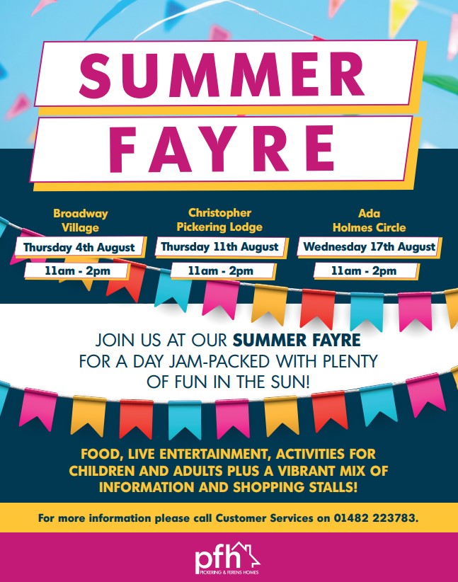 Join the Pickering & Ferens team at their summer fayre. They will be hosting 3 events over 3 different sites all on different days and they will be something for all the family, so make sure you pop the date in your diary!