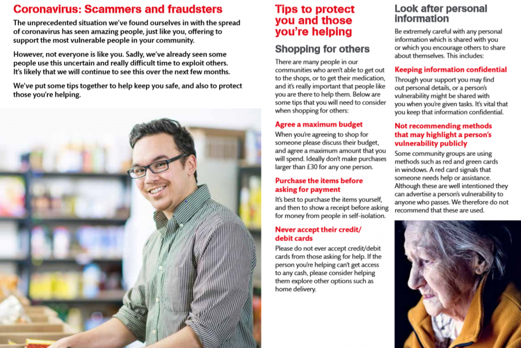 Victim Support have produced a brand new Scams & Fraud leaflet to share with groups who are supporting others during the Coronavirus Pandemic. There are some fantastic tips to keep group members safe and those they are helping.