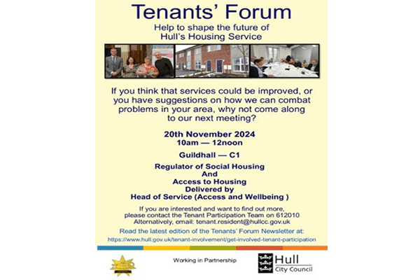 14th November 2024 14th November 2024Categories Events & ActivitiesGet InvolvedLocal News & ServicesNewsTenants Forum Meeting this November.The next Tenants Forum meeting is on Wednesday 20th November 2024! If you think that services could be […]