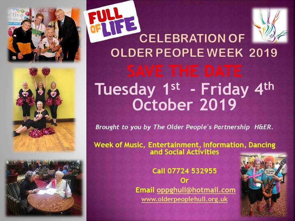 17th September 2021 17th September 2021Categories Events & ActivitiesGet InvolvedLocal News & ServicesNewsTake part in the Older People’s Partnership week of celebrationSince 2014, the Older People’s Partnership Hull & East Riding have celebrated International Older Peoples Day through holding […]