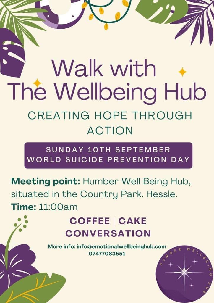8th September 2023 8th September 2023Categories Events & ActivitiesGet InvolvedNewsWalk with the Humber Wellbeing Hub team.Are you free on Sunday 10th September? If yes, why not get out in the fresh air and […]