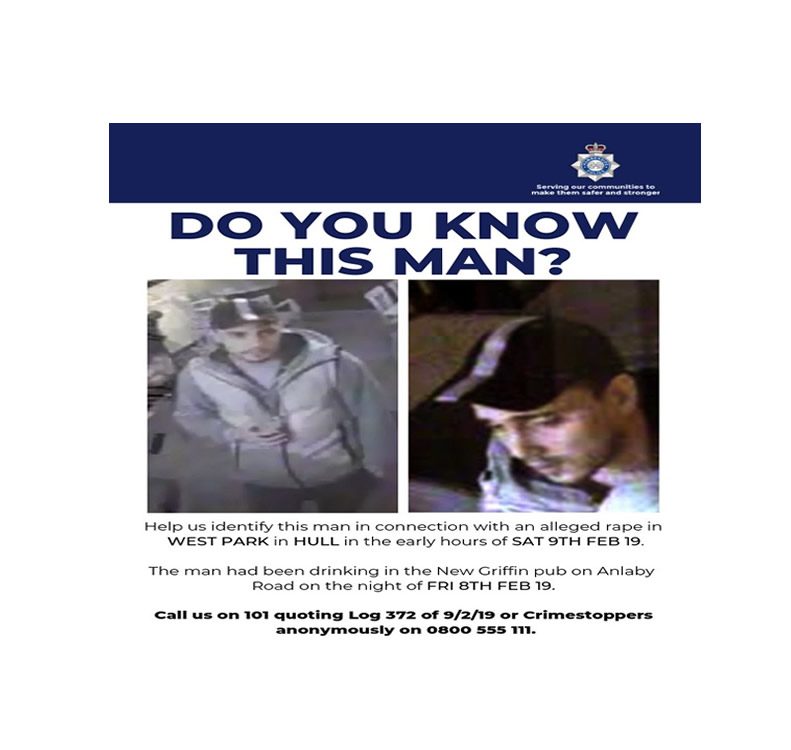 3rd April 2019 3rd April 2019Categories NewsPolice NewsHull: CCTV released of suspect in connection with alleged rapeHumberside Police have obtained new CCTV footage of a suspect they want to speak with in connection with […]
