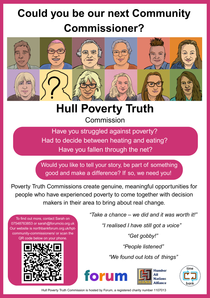 If so, join the Hull Poverty Truth Commission and make a real difference by speaking up with decision makers and making a change. Check out the poster below for more information or contact Sarah at Forum on Tel: 07548 763853 or email sarah@forumcio.org.uk visit Hull Poverty Truth Commission – Forum